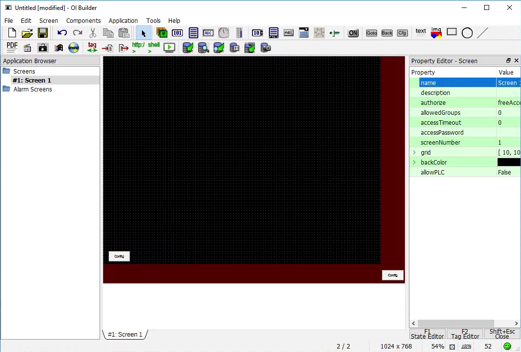 OI supports 2 native screen sizes which are different aspect ratios. When changing between the two, OIB can automatically adjust components. These options are shown when Change Screen Size is pressed in the Application Settings->Screen tab.