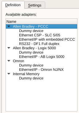 One of the hardware types provide special capabilities. The internal memory adapter allows the creation of tags to be used entirely within the OI application. These allow interface interactions to be created that do not need configuration within the PLC and allow elimination of PLC logic strictly for those interaction.