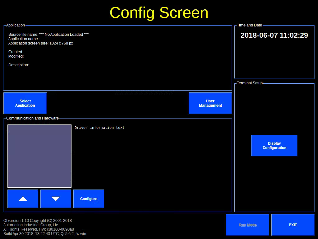 OI Windows runtime includes configuration tools for the OI Application. The system is configured through the standard windows interfaces.