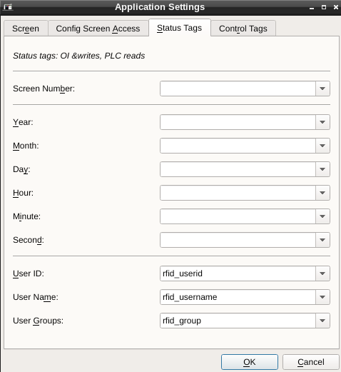 Under Application → Settings → Status Tags, set the userid, username, and group tags to the ones we just created.