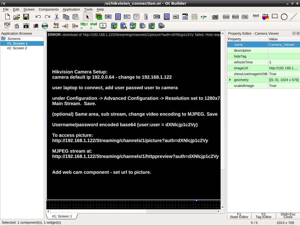 The sample program includes one OIB program - hikvision_connection.oi. Copy this to the OI terminal to run the application.