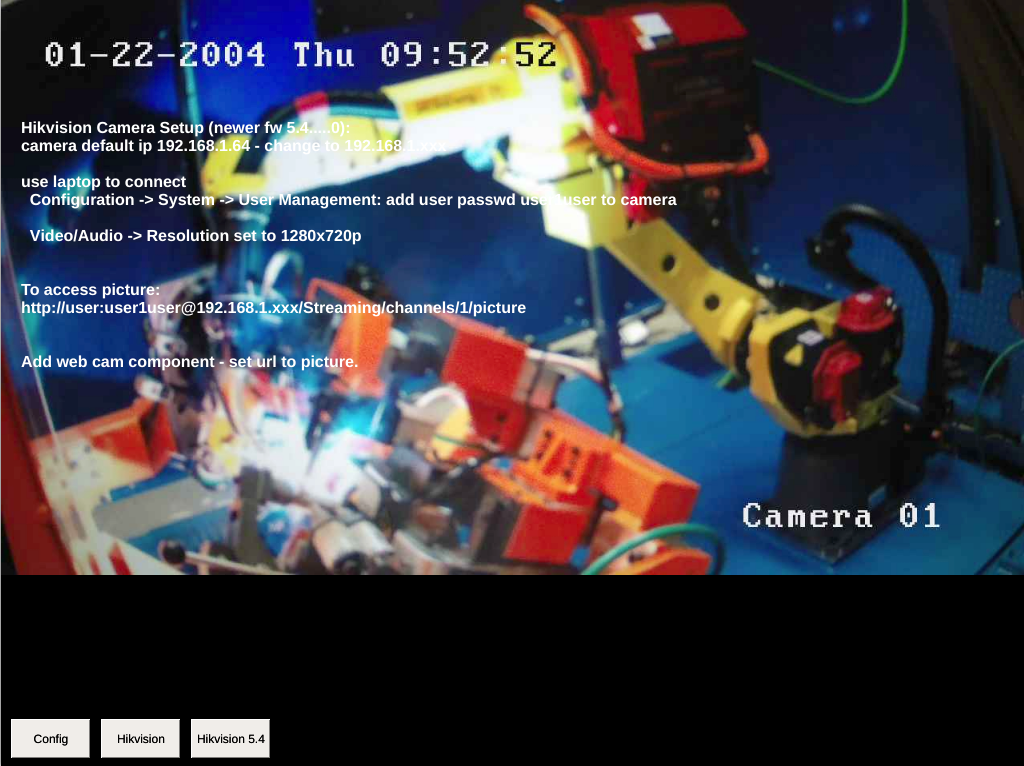 The sample program includes a webcam component already configured, as well as a text area with instructions for setting up the webcam (in this case, two versions of Hikvision brand IP cameras).